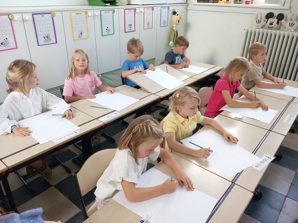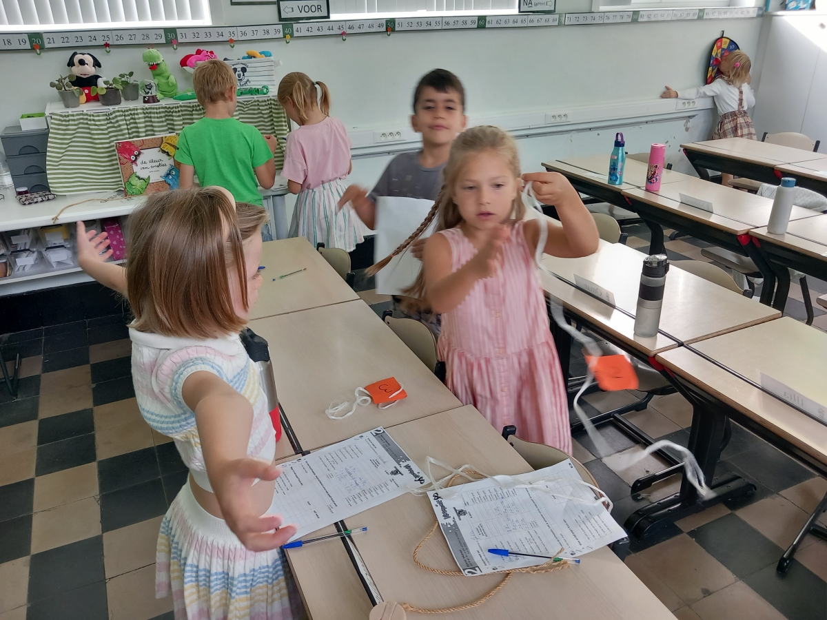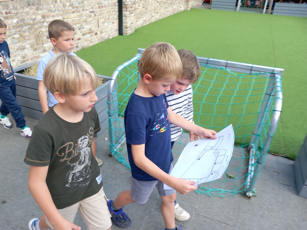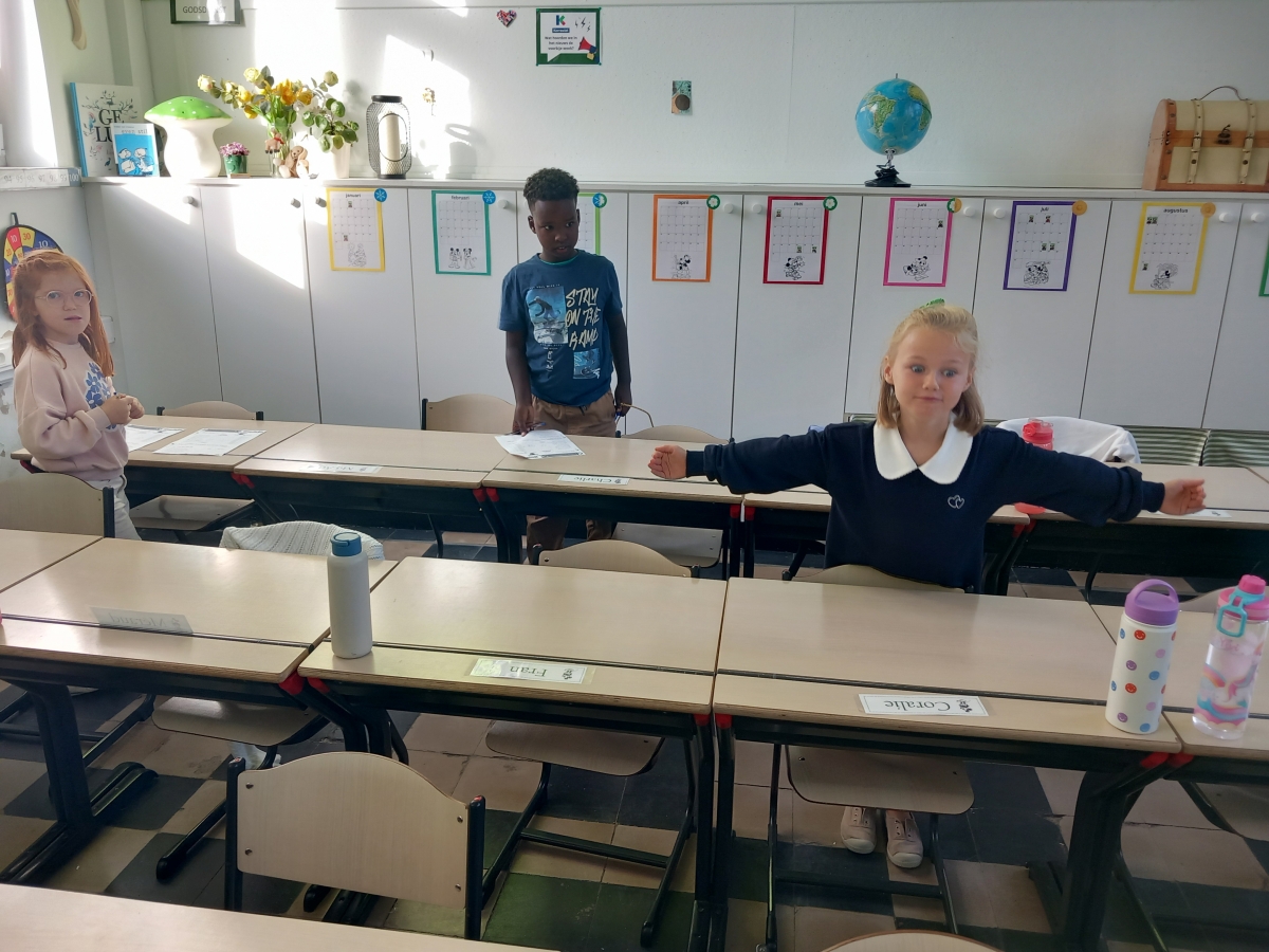 2E in de startblokken… wat bracht september ons? De eerste dag moesten de kinderen door een spel de sleutel van de klas proberen te bemachtigen. Wie als eerste alle opdrachten tot een goed einde bracht, mocht ook als eerste de klas betreden. De maand werd daarna ook al gevuld met jarigen vieren, hoekenwerk, speurneuzenzoektocht op school, plattegronden lezen, schatkisten zoeken via kaartlezen, interviews afnemen, soep maken voor Johny, meten en weten, trommelen voor de vrede, de loopwedstrijd, de dag van de sportclub, werken op de tablet, een kijkdoos maken van onze droomslaapkamer, … en er werd natuurlijk ook al hard en veel gerekend, geschreven, gelezen en alsof dat nog niet genoeg was, leerden we ook al onze eerste hoofdletter! We zijn er dus stevig ingevlogen in het tweede leerjaar!