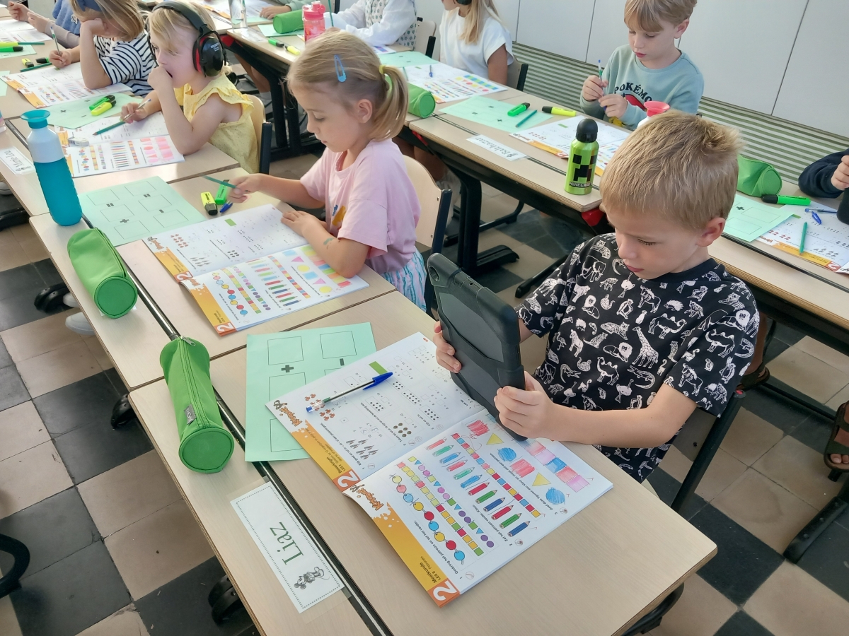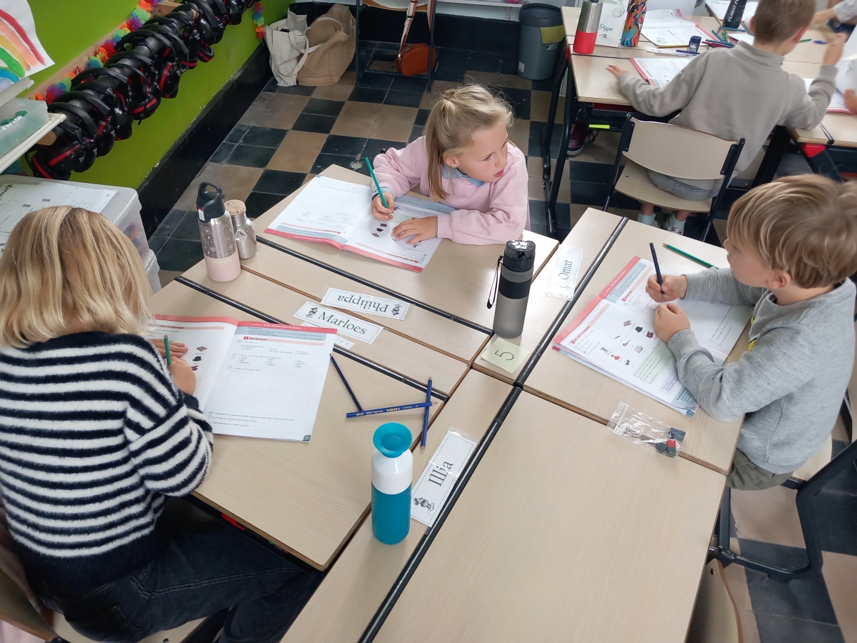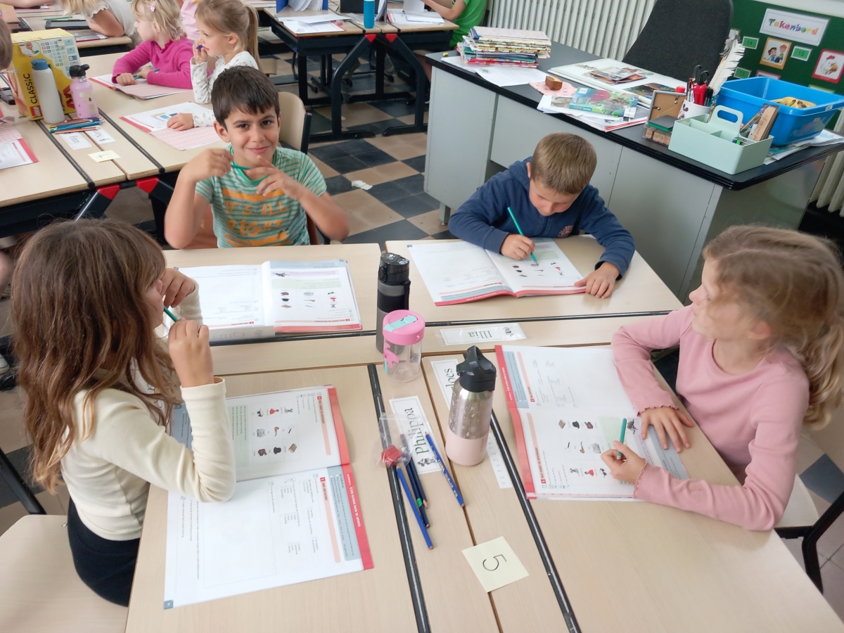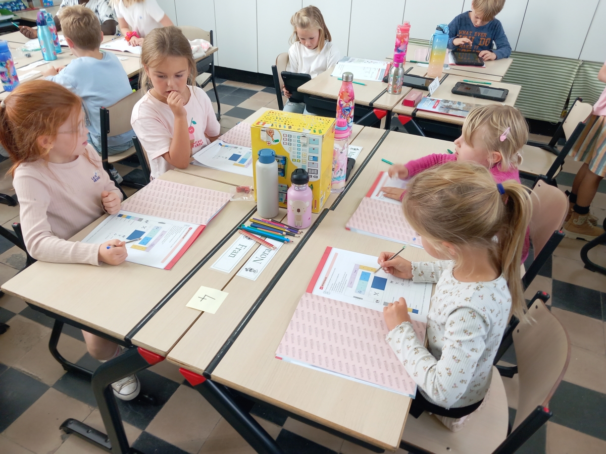 2E in de startblokken… wat bracht september ons? De eerste dag moesten de kinderen door een spel de sleutel van de klas proberen te bemachtigen. Wie als eerste alle opdrachten tot een goed einde bracht, mocht ook als eerste de klas betreden. De maand werd daarna ook al gevuld met jarigen vieren, hoekenwerk, speurneuzenzoektocht op school, plattegronden lezen, schatkisten zoeken via kaartlezen, interviews afnemen, soep maken voor Johny, meten en weten, trommelen voor de vrede, de loopwedstrijd, de dag van de sportclub, werken op de tablet, een kijkdoos maken van onze droomslaapkamer, … en er werd natuurlijk ook al hard en veel gerekend, geschreven, gelezen en alsof dat nog niet genoeg was, leerden we ook al onze eerste hoofdletter! We zijn er dus stevig ingevlogen in het tweede leerjaar!