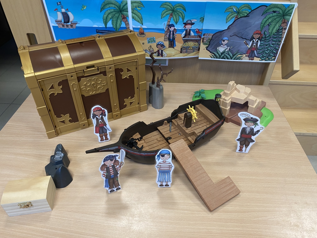 Wat hebben we het druk gehad de voorbije weken met het zoeken naar goudstukken en schatkisten. Rijmende goudstukken, goudstukken met letters op, goudstukken om mee te betalen in onze piratenwinkel, schatten zoeken met de Bee-bot.... En natuurlijk de schat van Z de verschrikkelijke zoeken.