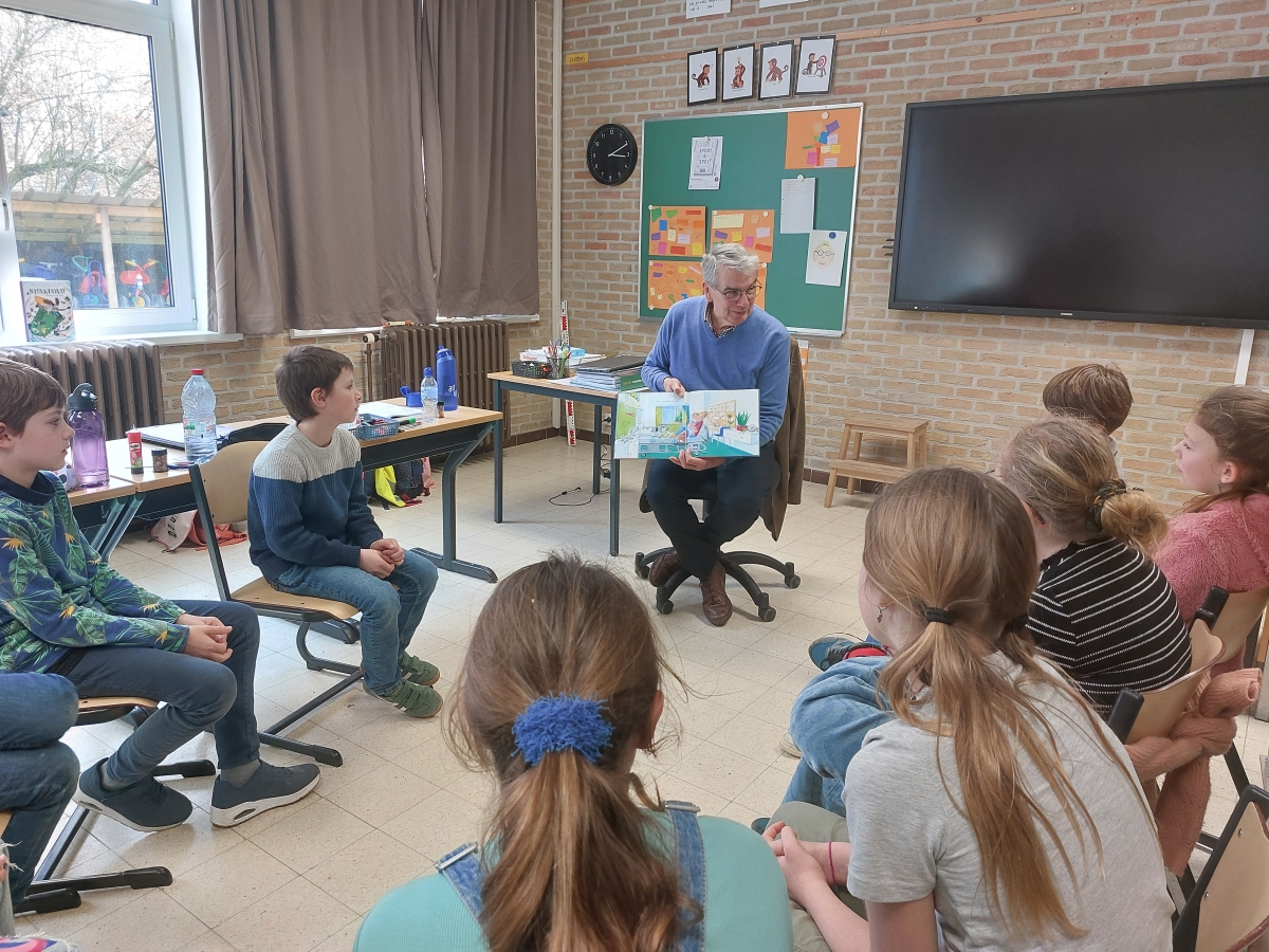 Boekenmaand in 4Z Boekenmaand in 4Z In de maand maart werkten we rond boeken. We volgden een auteurslezing van Karla Stoefs bij in de bib en ook de mama van Liam en de opa van Marie-Lynn kwamen voorlezen in de klas. Zo proberen we het lezen nog verder te stimuleren.