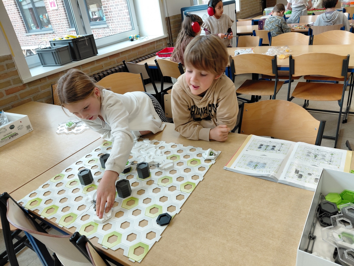 Een hoekenwerk rond techniek nadat we leerden over tandwielen. Stappenplannen volgen. Ons brein aan het werk zetten met een puzzel. Programmeren en de leerstof inoefenen. Samenwerken aan een gemeenschappelijk doel. We hadden een leuke namiddag.