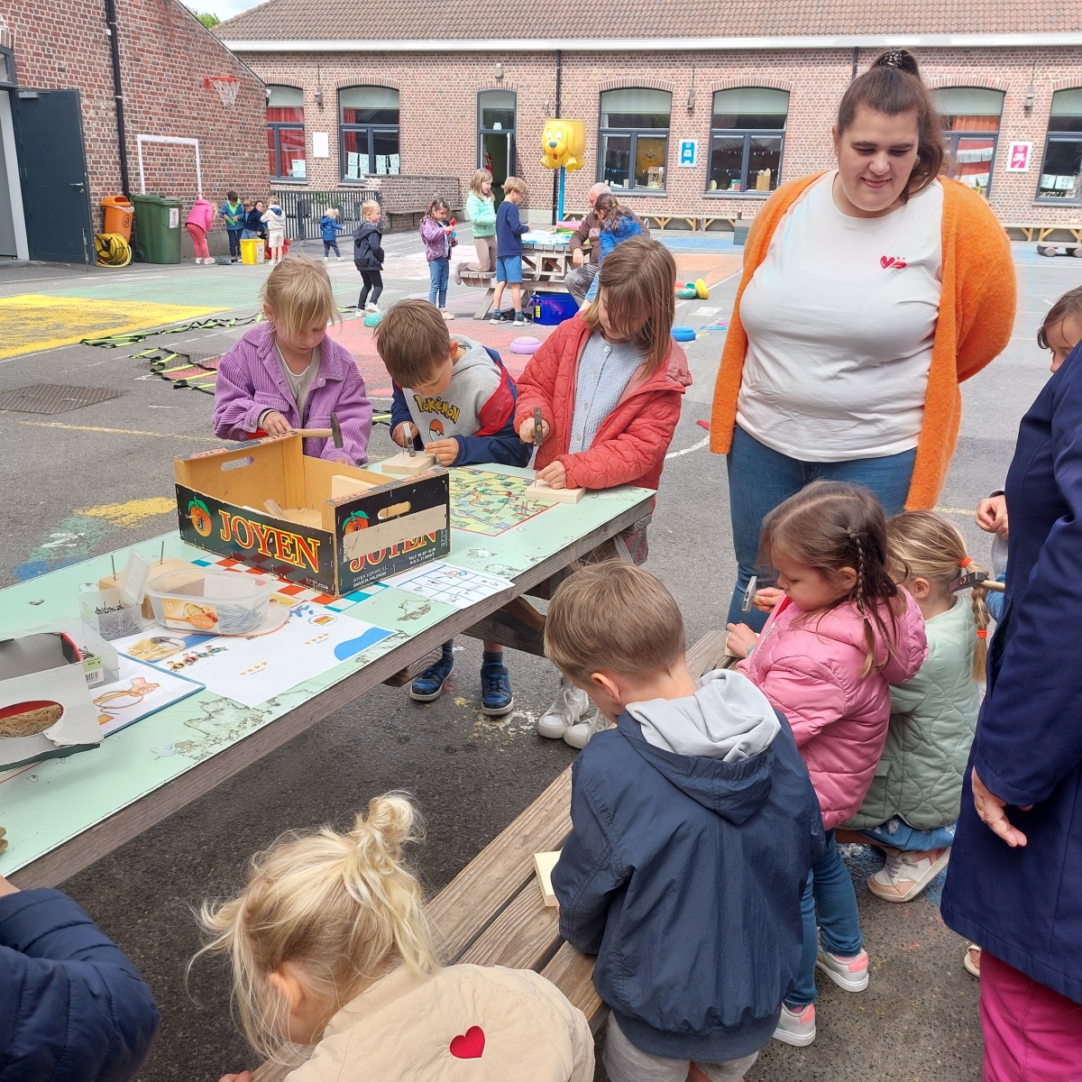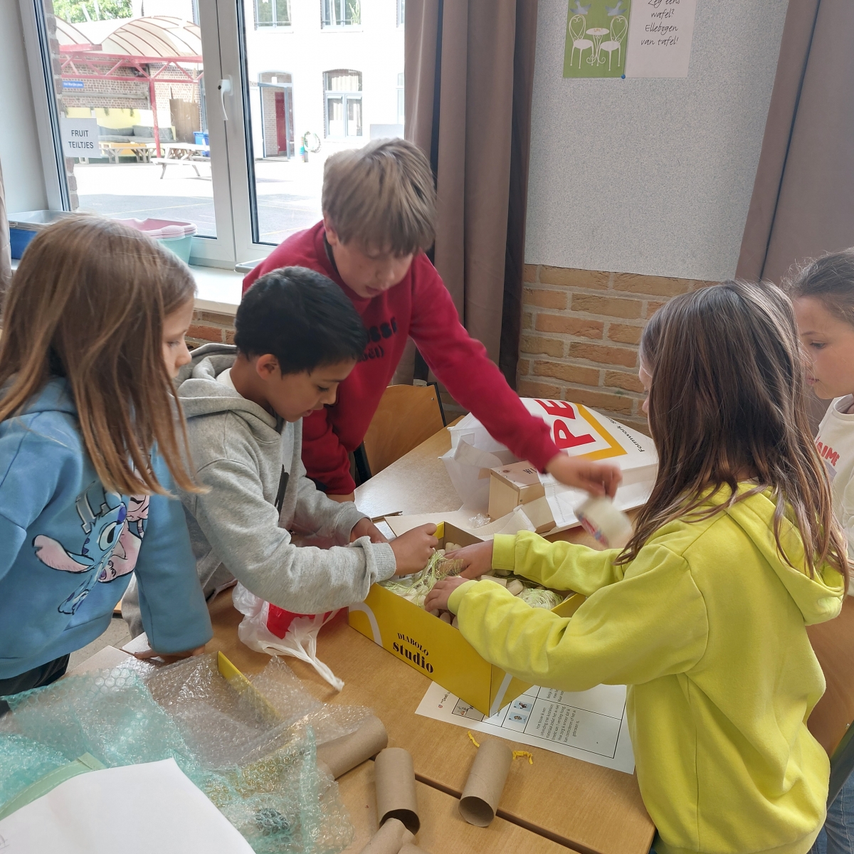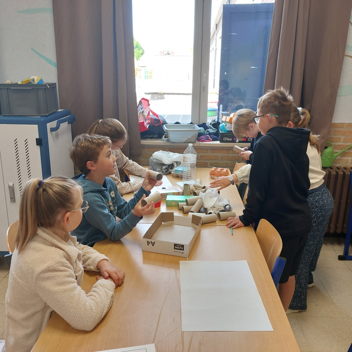 Met prioriteit STEM en techniek gingen we aan de slag in diverse uitdagingen omtrent STEM. Hoe kan een ei van 4 meter hoog vallen zonder te breken? HOe kunnen we een knikker 3 seconden laten rollen? In de namiddag gaan we aan de slag om onderzoekend te leren met techniek.