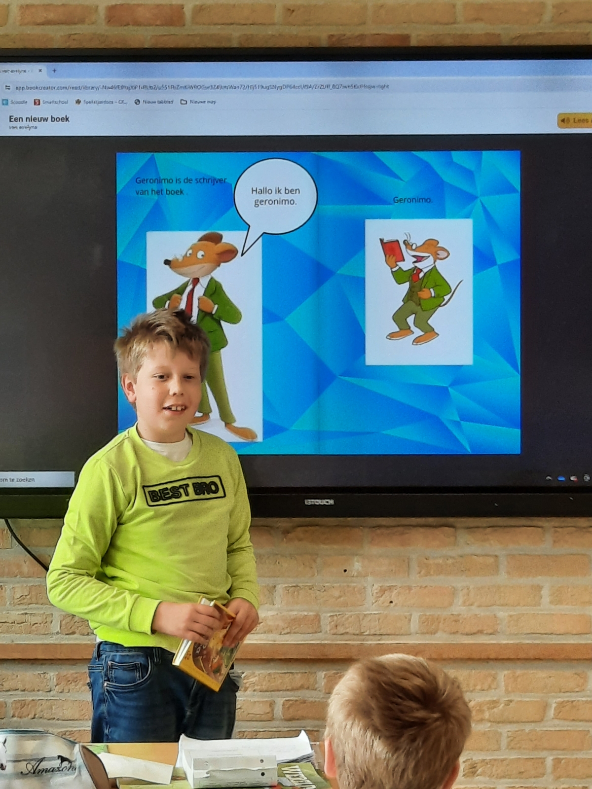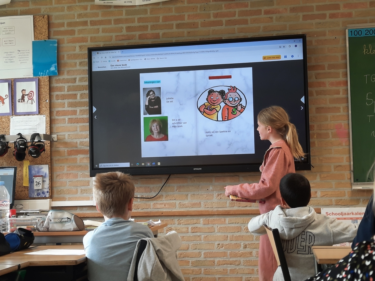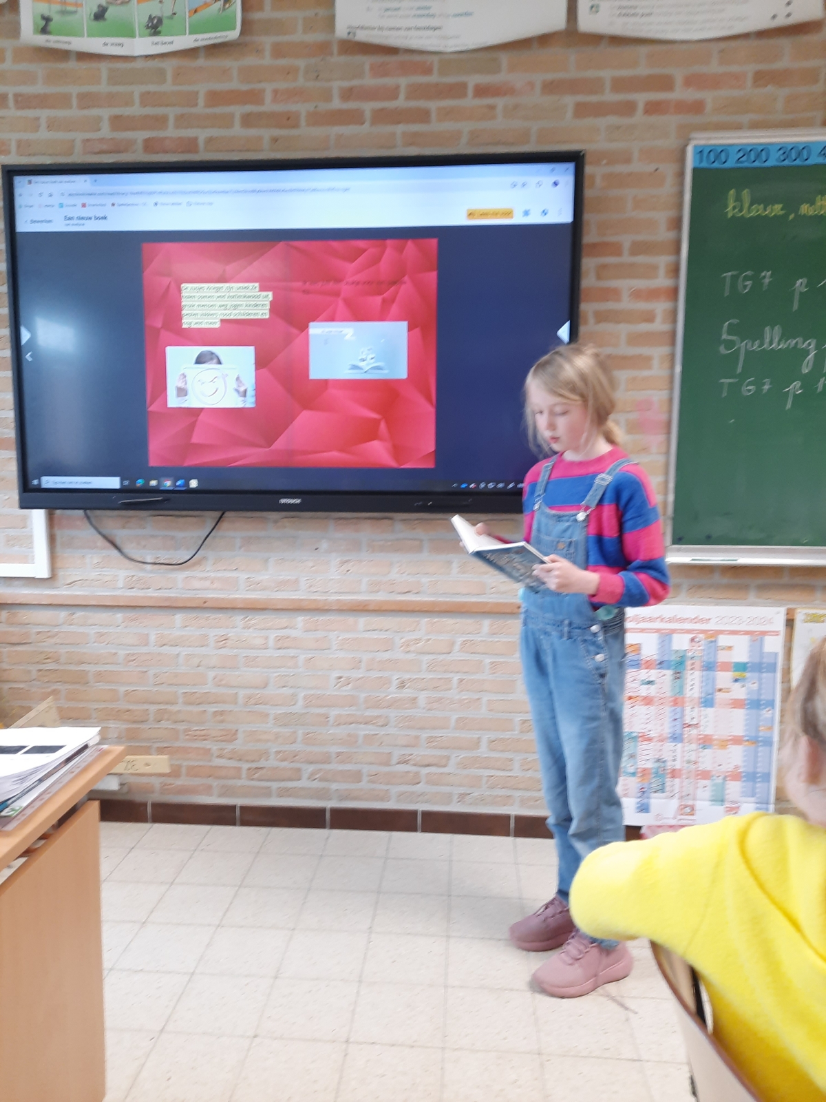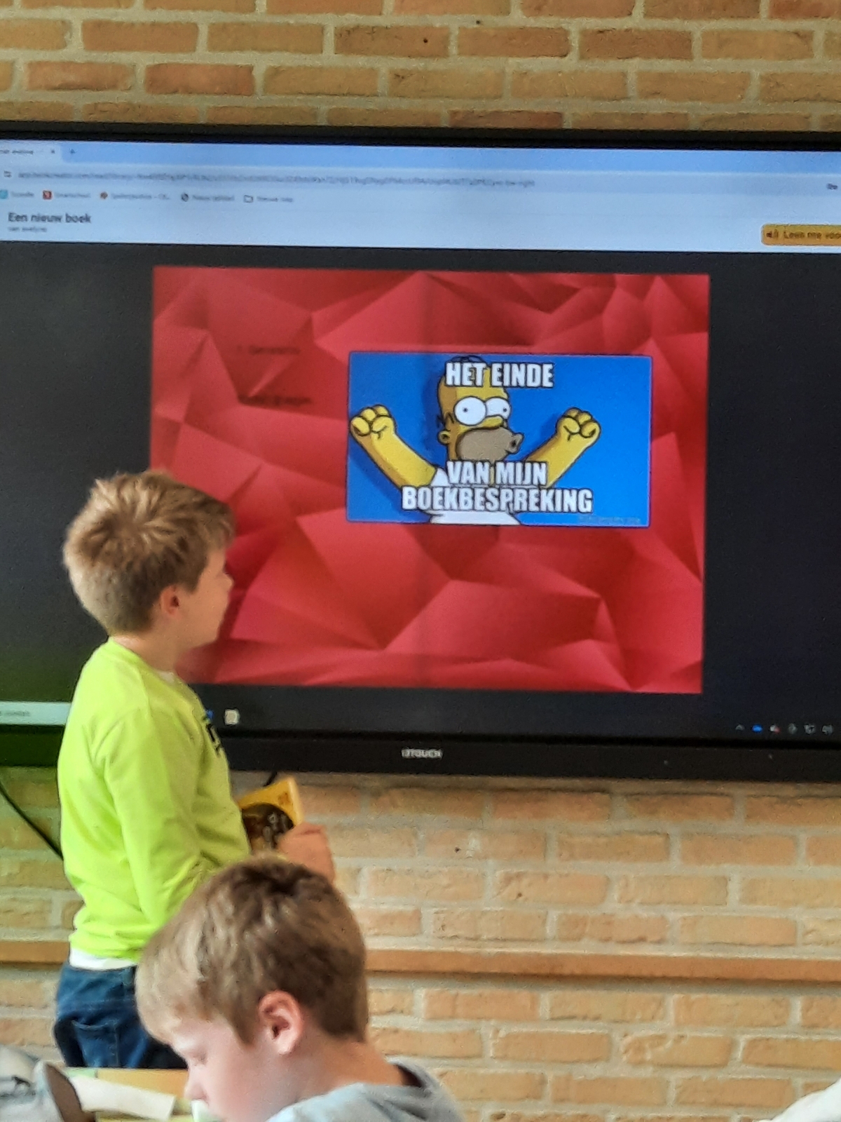 De leerlingen maakten een boekbespreking in bookcreator en stelden dit dan voor aan de klas.