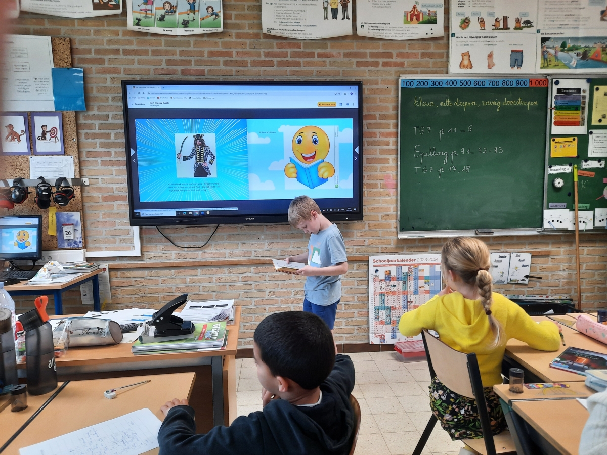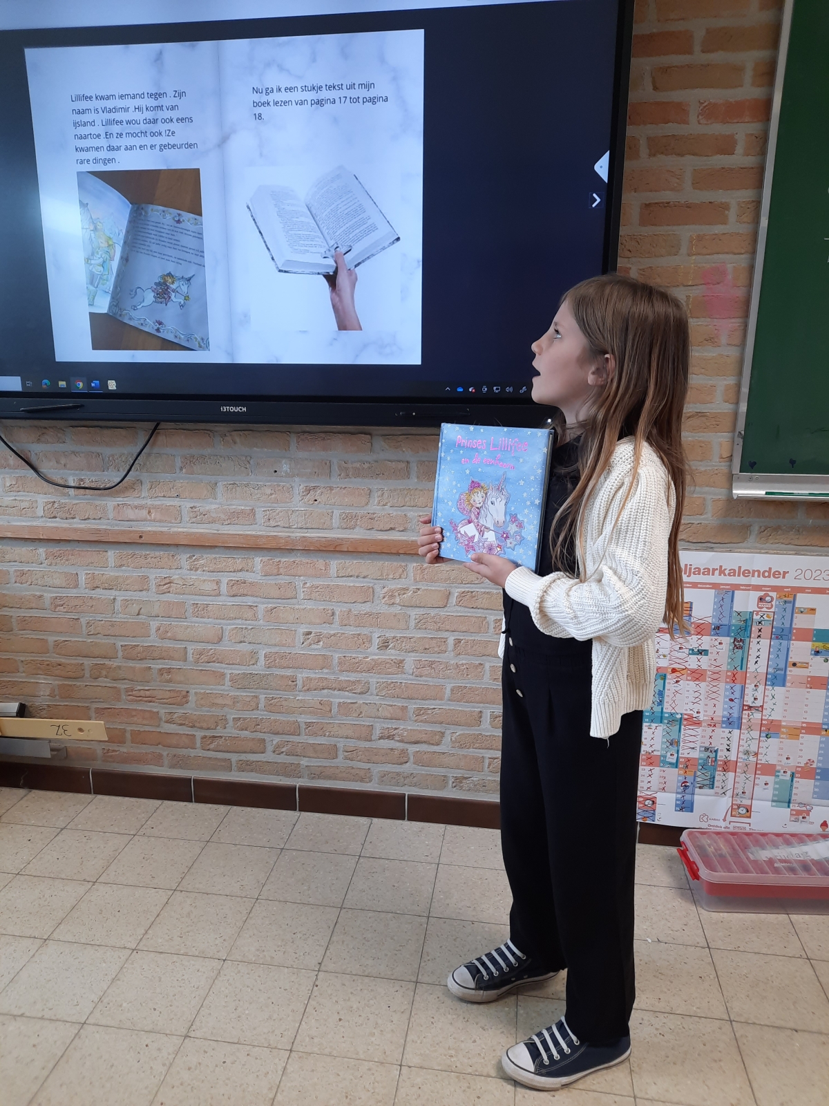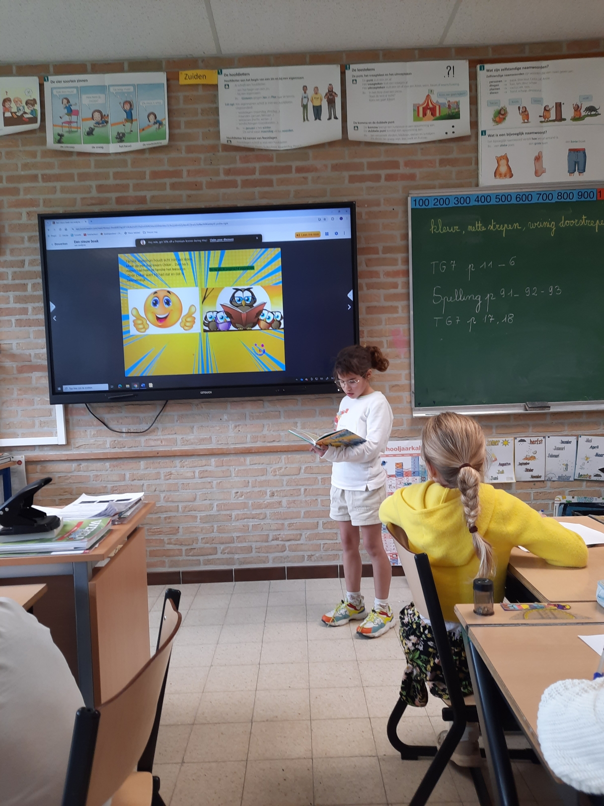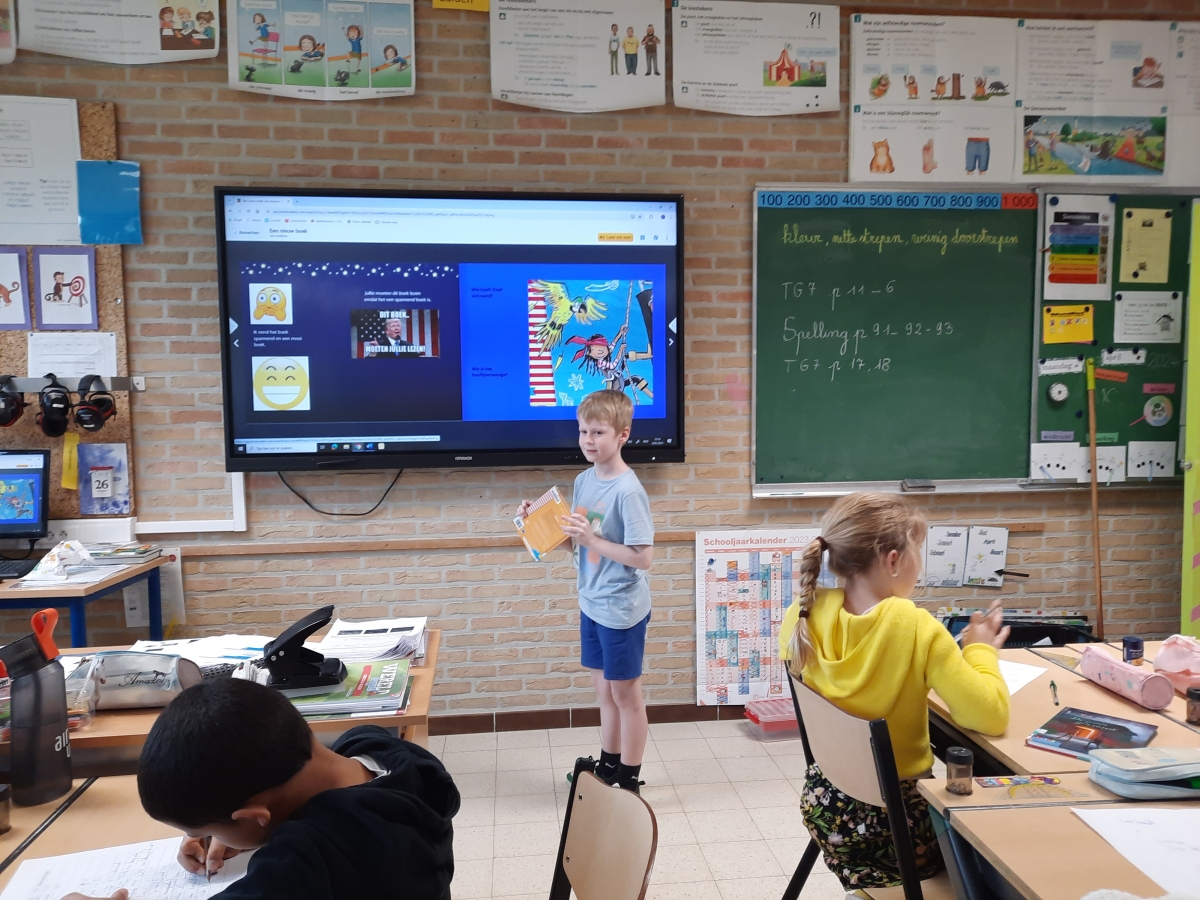 De leerlingen maakten een boekbespreking in bookcreator en stelden dit dan voor aan de klas.